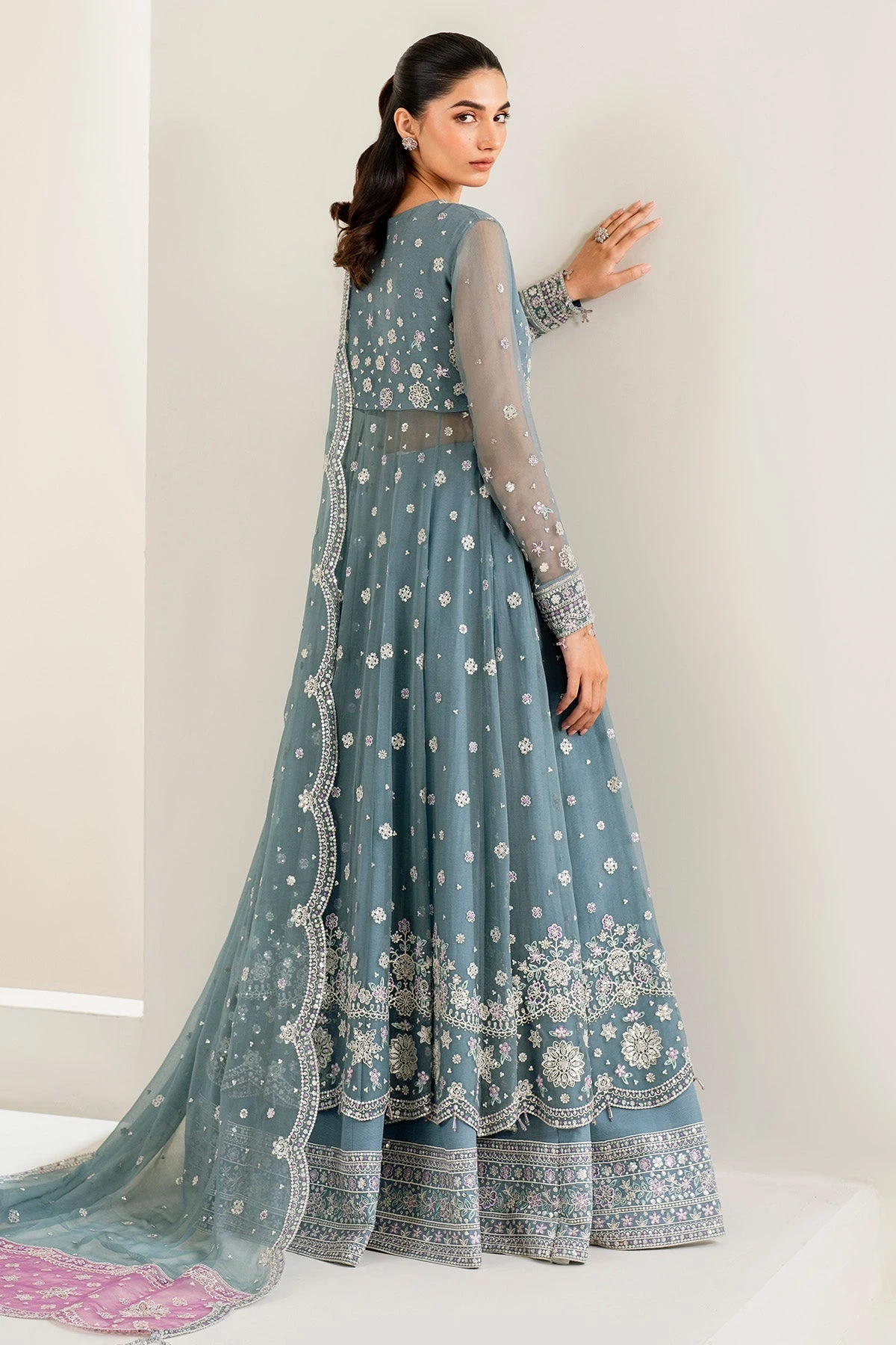 Luxury Aqua Blue Embroidered Pakistani Wedding Dress Frock Gharara is an Embellished masterpiece intricately adorned with lavish designs and royal adornments. The beautiful work of sitara, sequins, tilla and gota make this Pakistani Dress a ravishing attire to wear on your Wedding Day.