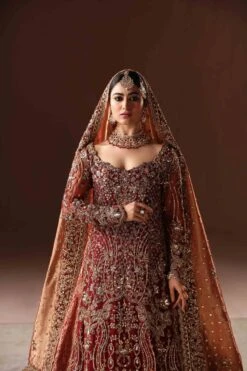 Embroidered Scarlet Pakistani Bridal Dress In Farshi Lehenga Style
