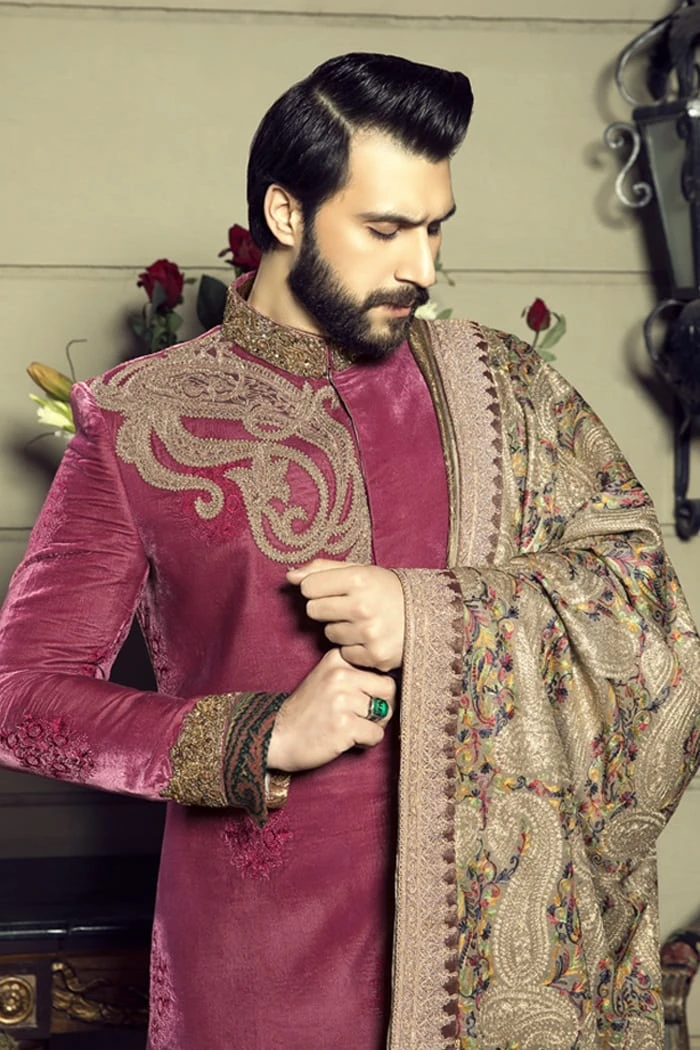 Pakistani Designer Royal Look Sherwani for Groom in Stylish design. Royal Look Sherwani is looking so beautiful and best choice for groom for wedding event.