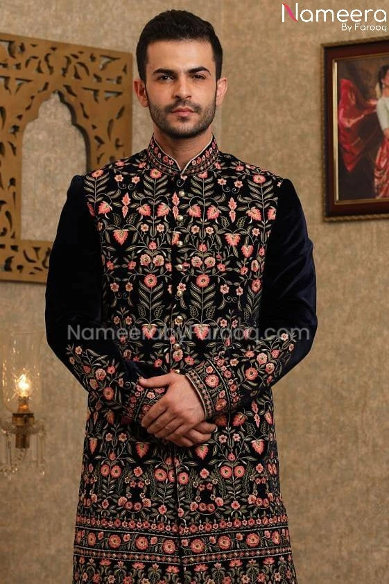 Pakistani Designer Sherwani for Wedding 2021 in Stylish design embellished with zari, resham embroidered stone. This Sherwani is looking so beautiful and best choice for groom for wedding event.