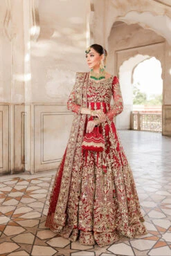 Pakistani Wedding Dress in Red Net Gown Lehenga Style is a traditional masterpiece that will give the gorgeous bride a head-turning look on the most important day of her life.